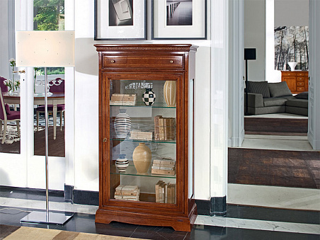 Стеклянная витрина с верхним выдвижным ящиком. Размер 85х38х156