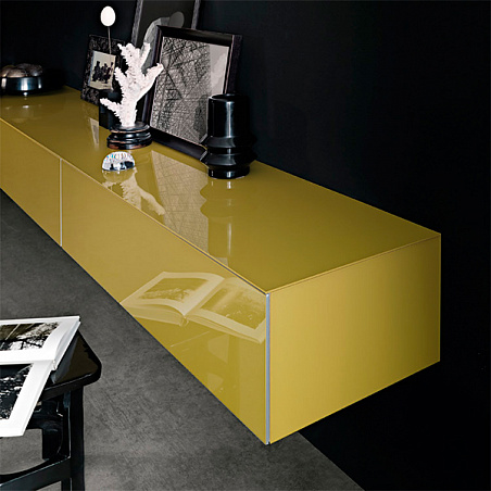 Композиция с подвесными ящиками, из лакированного глянцевого стекла ocra Abacus Living Rimadesio