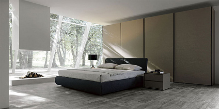 Шкаф-купе, отделка Frassinato melamine, кровать в мягкой обивке