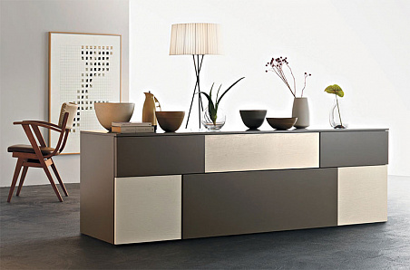 Комод в шпонированной и лакированной отделке, с модулями разных размеров